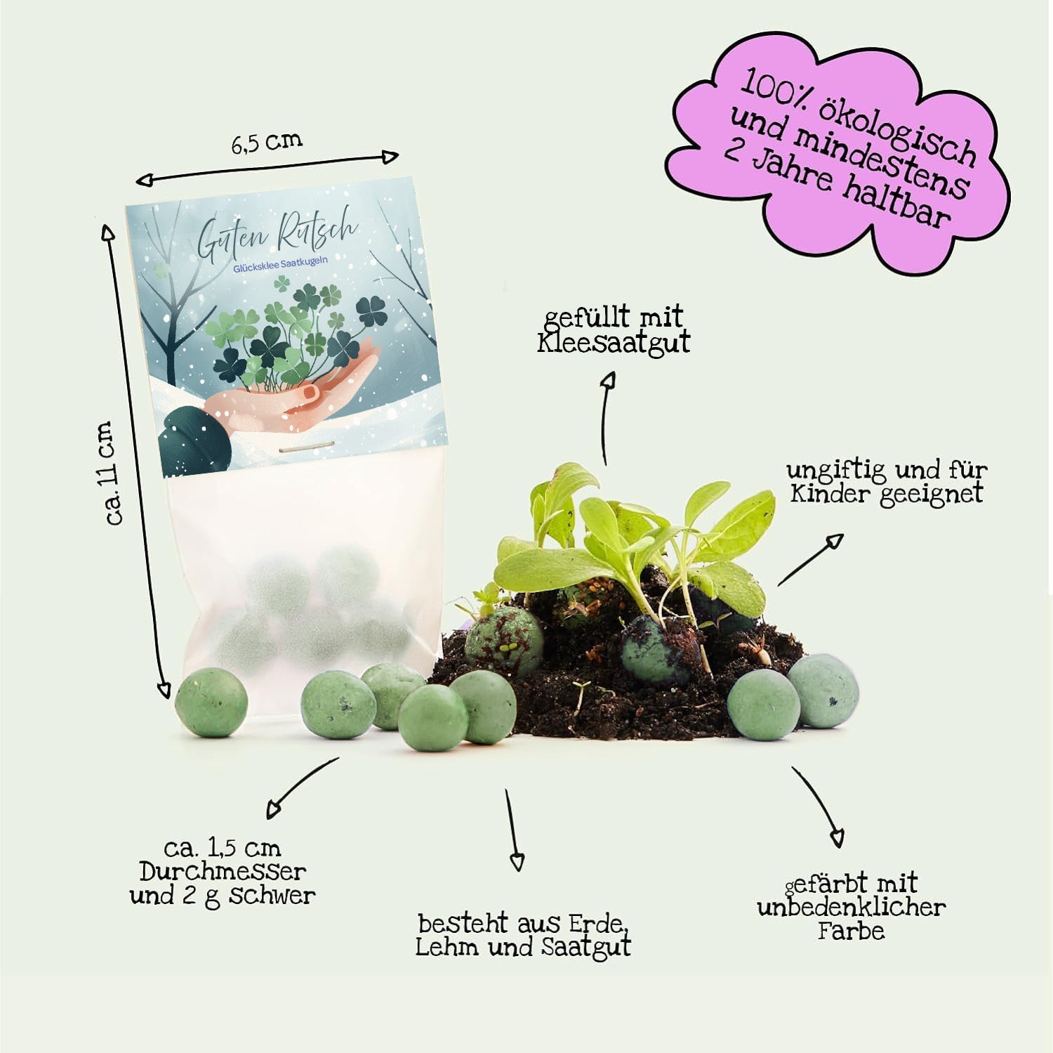 🍀 EXTRA PORTION GLÜCK: Mit unseren Seedbombs unterstützt du die Natur und machst Bienen glücklich. Einfach im Frühjahr werfen – die Kleesamen sorgen für die extra Portion Glück im neuen Jahr und bringen Leben in deinen Garten.