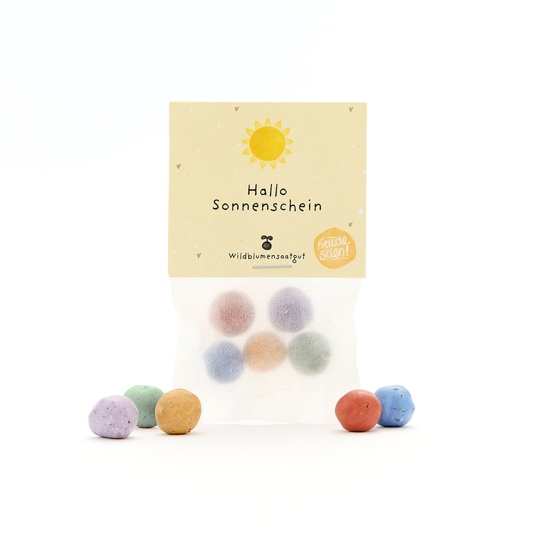 5 Blumenmurmeln im Tütchen "Hallo Sonnenschein"