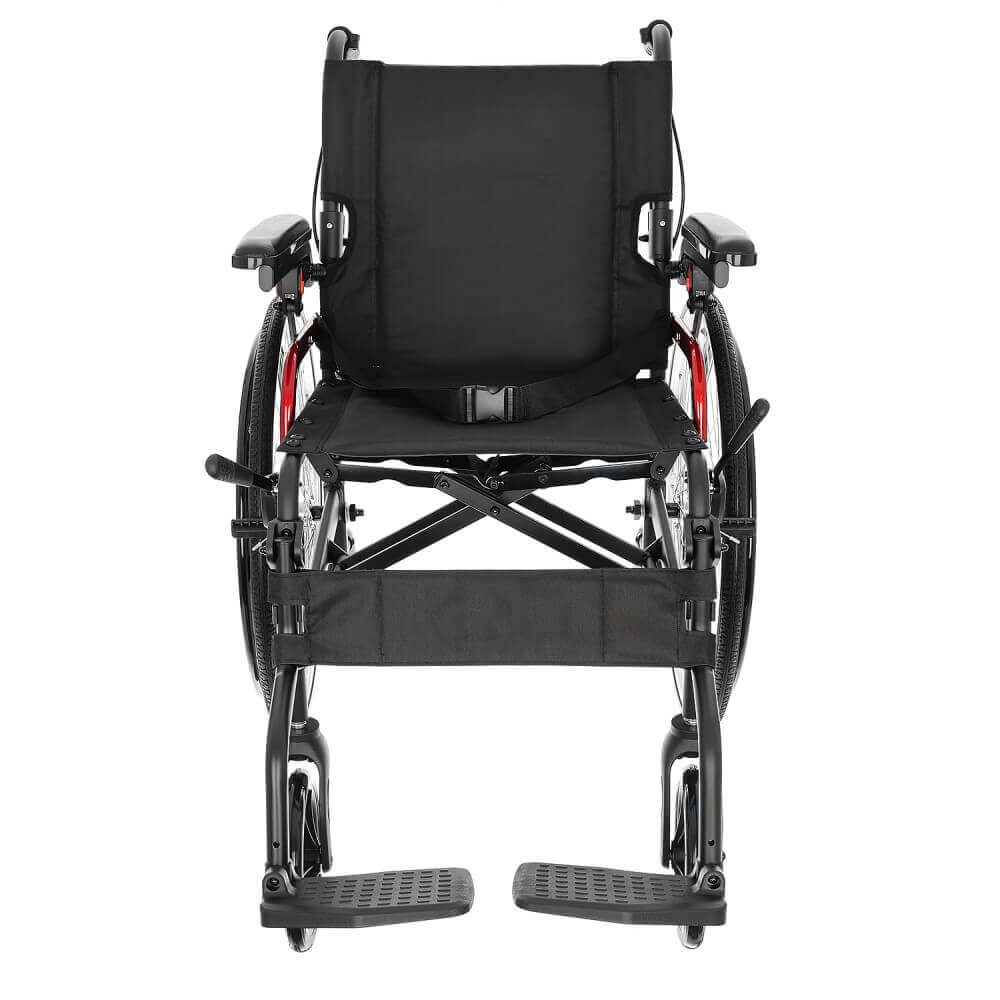 Die Sitzfläche von 46 cm Breite und 40 cm Tiefe sowie die komfortable Polsterung bieten auch bei längerer Nutzung hohen Komfort. Der Rollstuhl verfügt über eine Rückenlehne mit 40 cm Höhe sowie Armlehnen mit 23 cm Abstand zur Sitzfläche. Die Rückenlehne ist einklappbar, was den Transport zusätzlich erleichtert.