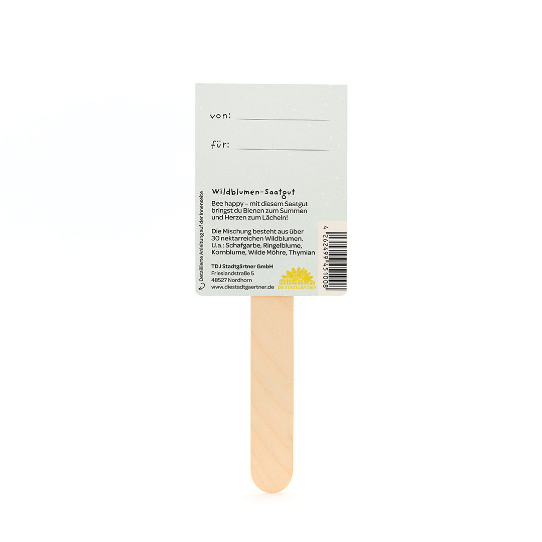 Ein summender Gruß voller Lebensfreude: Dieser fröhliche Saatgruß bringt kleine Glücksmomente zum Blühen. Mit dem Spruch und dem enthaltenen Wildblumen-Saatgut ist er eine liebevolle Aufmerksamkeit für alle, die ein bisschen Sonnenschein im Alltag gebrauchen können. Auf der Rückseite ist Platz für deinen Namen und den der beschenkten Person – für eine persönliche Note.