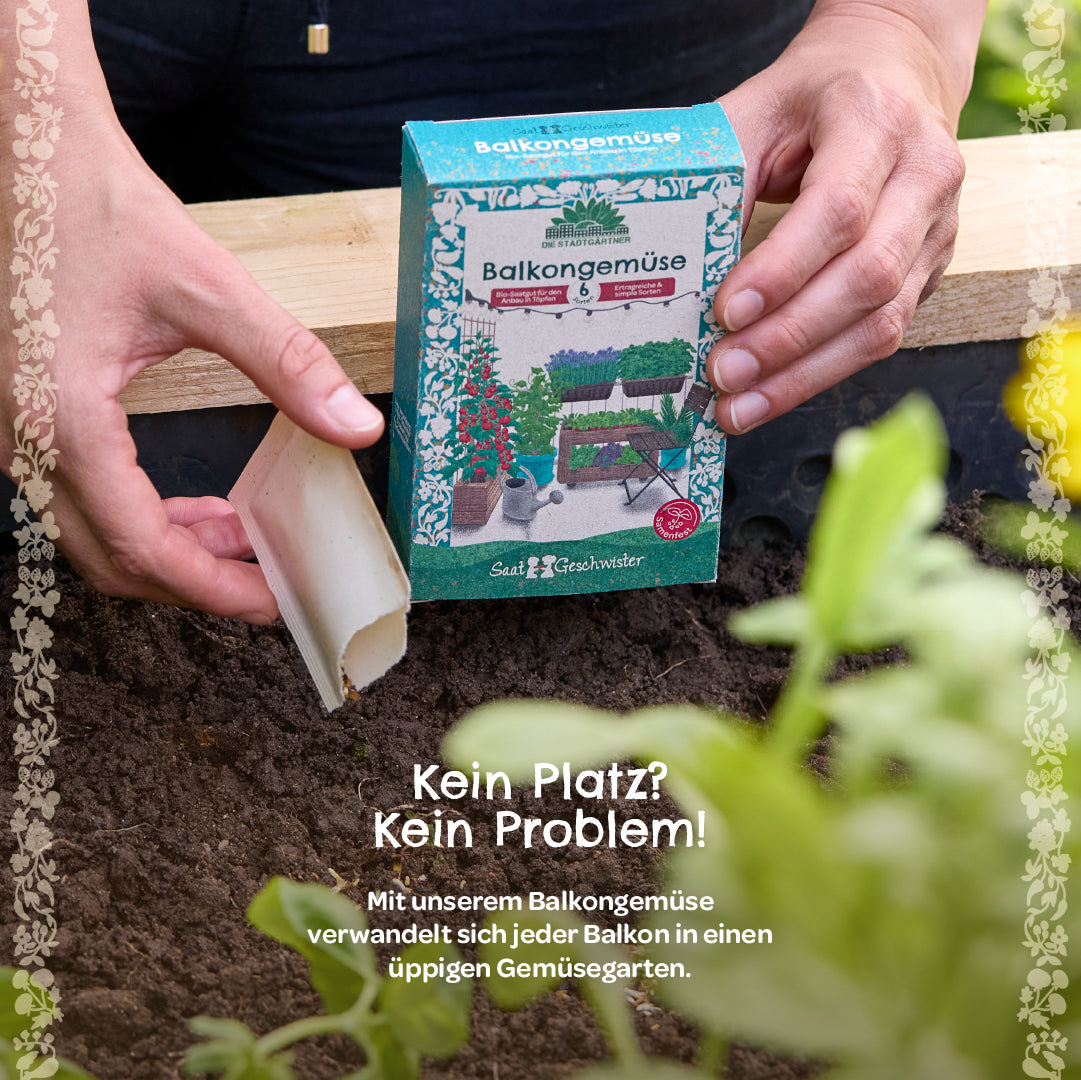 VIELSEITIGES SAMENFESTES SAATGUT-SET FÜR BALKONGEMÜSE: Kein Platz? Kein Problem! Das Saatgut-Set enthält 6 Gemüsesorten, die perfekt für den Balkon geeignet sind. Mit Pflücksalat, Gurken, Tomaten, Radieschen und Co. verwandelt sich jeder Balkon in einen üppigen Gemüsegarten!