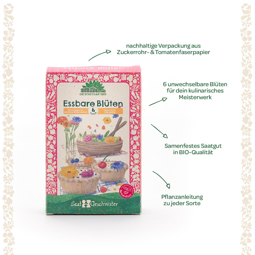 HOCHWERTIG: Für unser Saatgut-Set für essbare Blüten verwenden wir ausschließlich hochwertiges Saatgut in BIO-Qualität. Die Verpackung besteht aus nachhaltigem Zuckerrohrpapier. Sie sieht nicht nur toll aus, sondern eignet sich auch optimal zur Aufbewahrung des Saatguts.