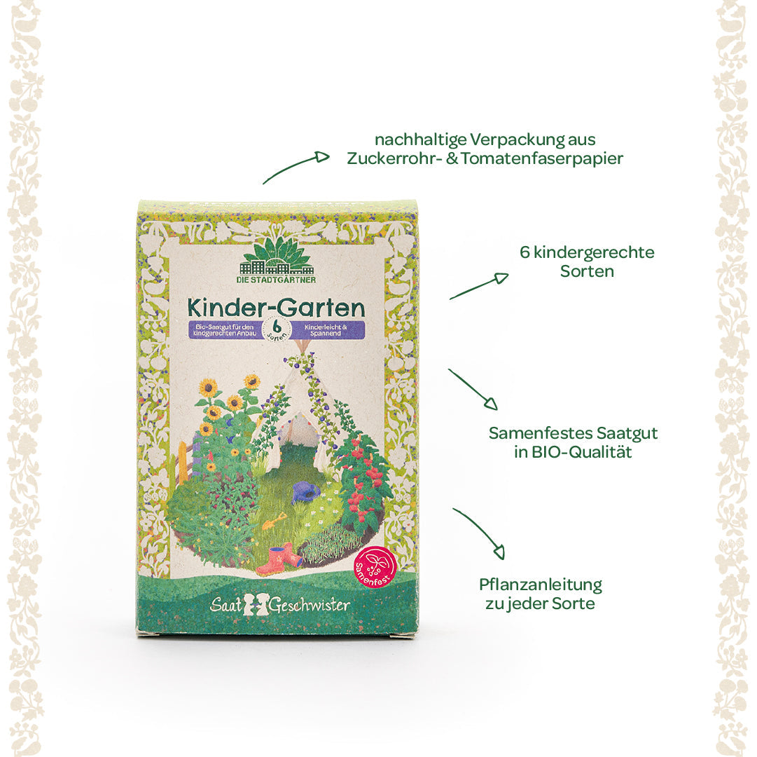 HOCHWERTIG: Für unser Saatgut-Set Kinder-Garten verwenden wir ausschließlich hochwertiges Saatgut in BIO-Qualität mit hoher Keimfähigkeit. Die Verpackung besteht aus nachhaltigem Zuckerrohrpapier. Sie sieht nicht nur toll aus, sondern eignet sich auch optimal zur Aufbewahrung des Saatguts.