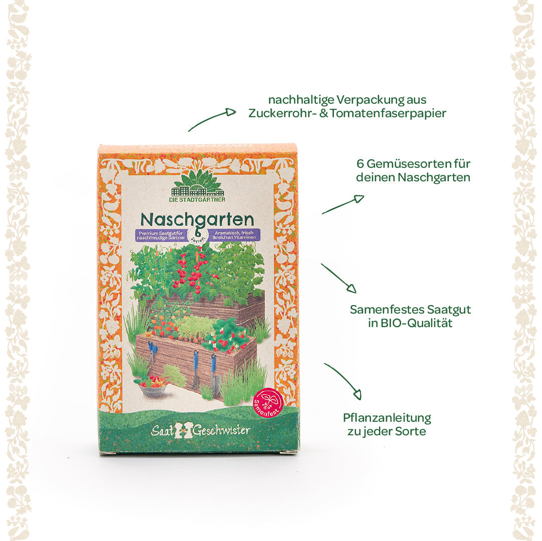 HOCHWERTIG: Für unser Saatgut-Set Naschgarten verwenden wir ausschließlich hochwertiges Saatgut. Die Verpackung besteht aus nachhaltigem Zuckerrohrpapier. Sie sieht nicht nur toll aus, sondern eignet sich auch optimal zur Aufbewahrung des Saatguts