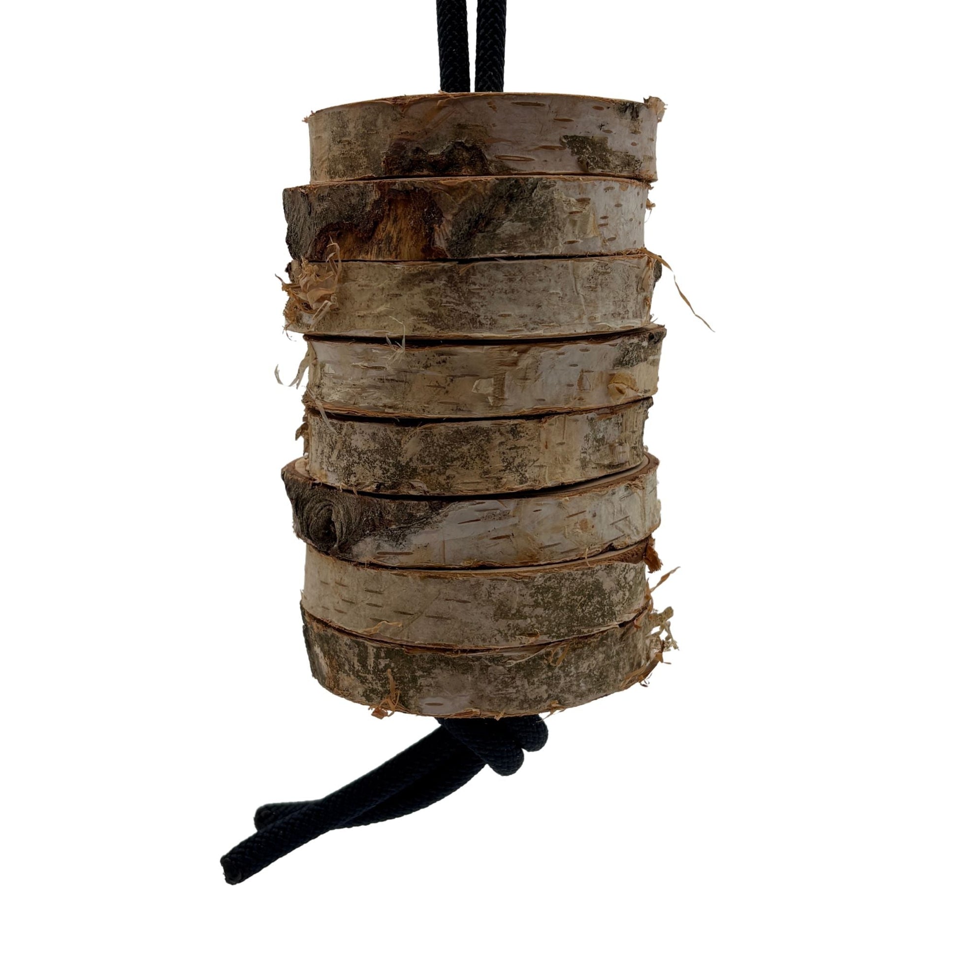 • Die Birkenholzscheiben können mit Kräutern beschichtet oder mit Lecksteinen kombiniert werden und ganz einfach auf die Aufhängung aufgefädelt werden.