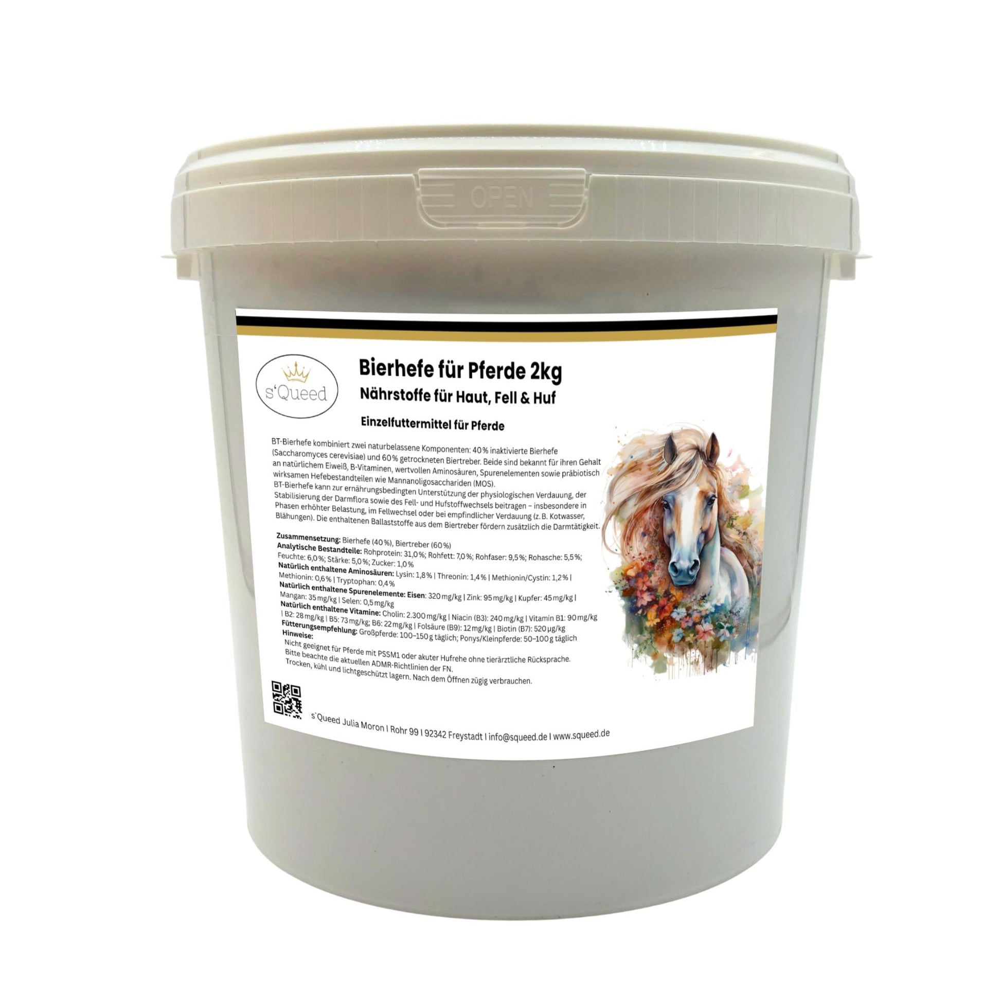 Die enthaltenen B-Vitamine, essenziellen Aminosäuren (z. B. Lysin, Methionin, Threonin) und wertvollen Spurenelemente (u. a. Zink, Selen, Kupfer, Eisen) unterstützen die Regeneration von Haut und Fell, fördern ein gesundes Hufwachstum und stärken die körpereigene Abwehr. Gleichzeitig wirken die enthaltenen Präbiotika (MOS) positiv auf den Aufbau der Darmflora beim Pferd – besonders hilfreich nach Wurmkuren, Antibiotikagabe oder bei langfristiger Fütterung zur Unterstützung des Darmmilieus.