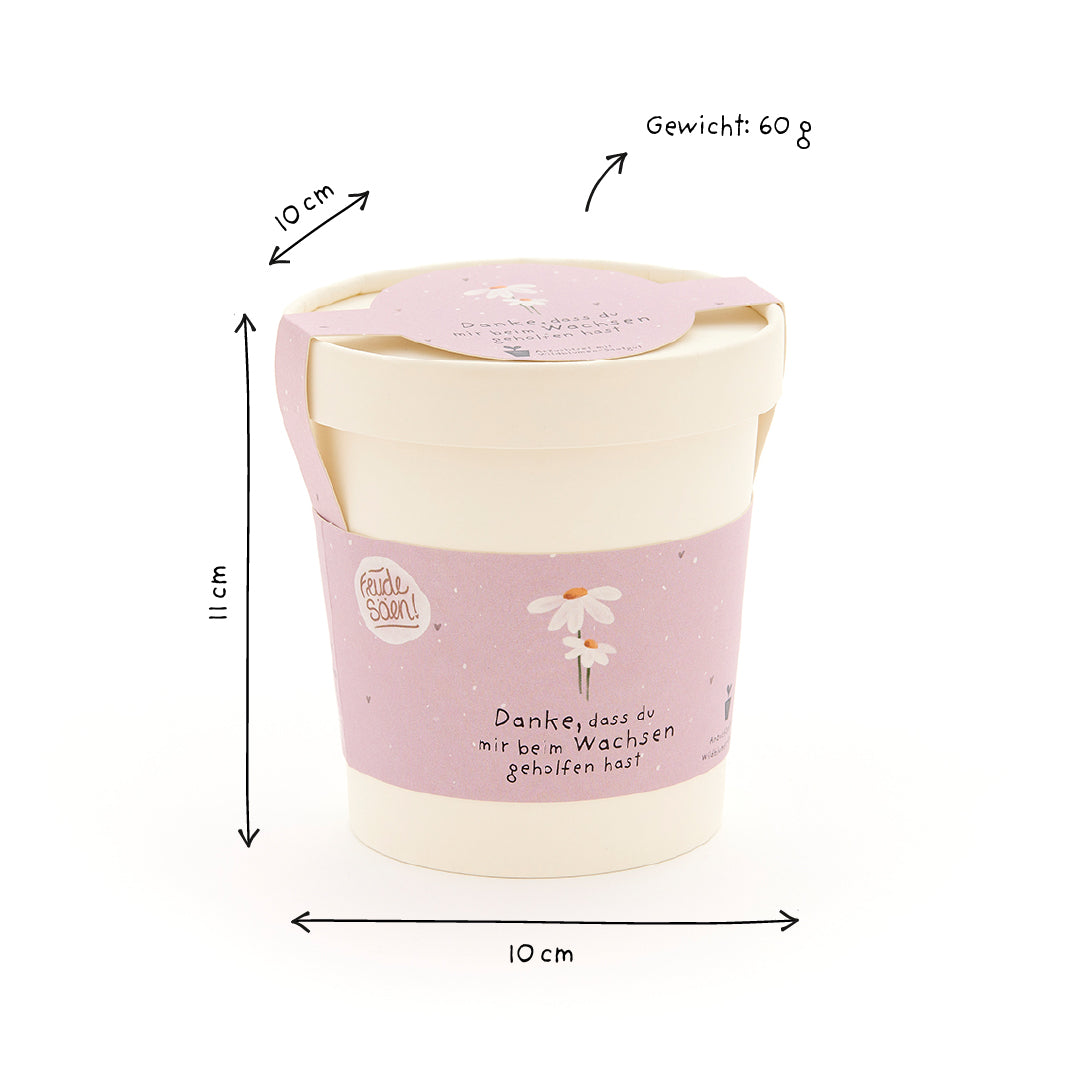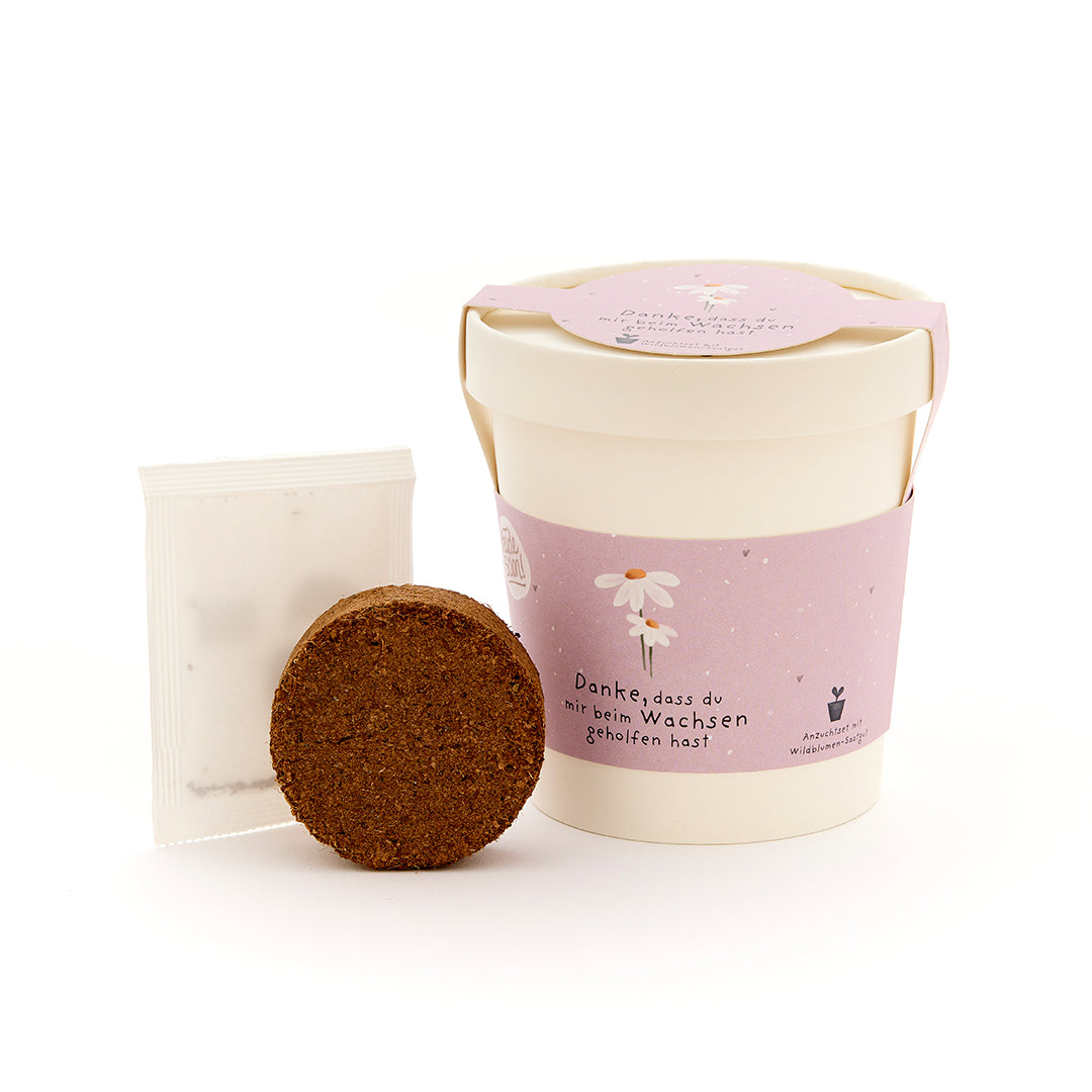 Ein Blütengruß voller Wertschätzung: Dieses besondere Anzuchtset für Wildblumen ist eine liebevolle Geste an Menschen, die uns begleitet, unterstützt und inspiriert haben. Der charmant gestaltete Becher mit der Aufschrift „Danke, dass du mir beim Wachsen geholfen hast“ sagt auf blühende Weise: Du warst wichtig für mich.