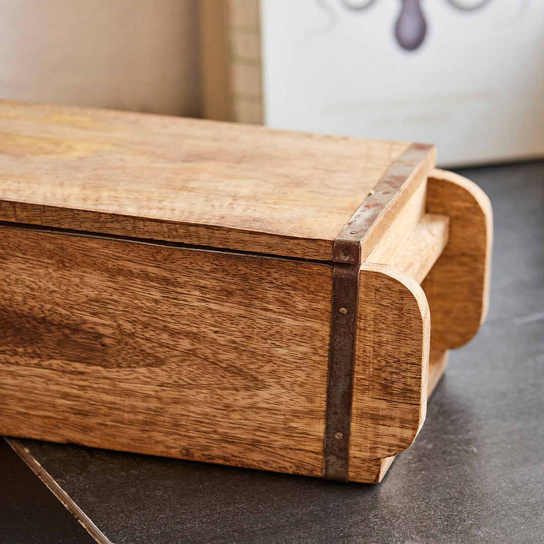 Wir retten Holz von Obstplantagen und bauen daraus wunderschöne, langlebige Deckel für die Ziegelform im Vintage-Look. Unser Deckel passt für die Ziegelform (1 Fach) und mit (2 Fächern). Durch eine zusätzliche natürliche Versiegelung sind sie besonders lange haltbar.