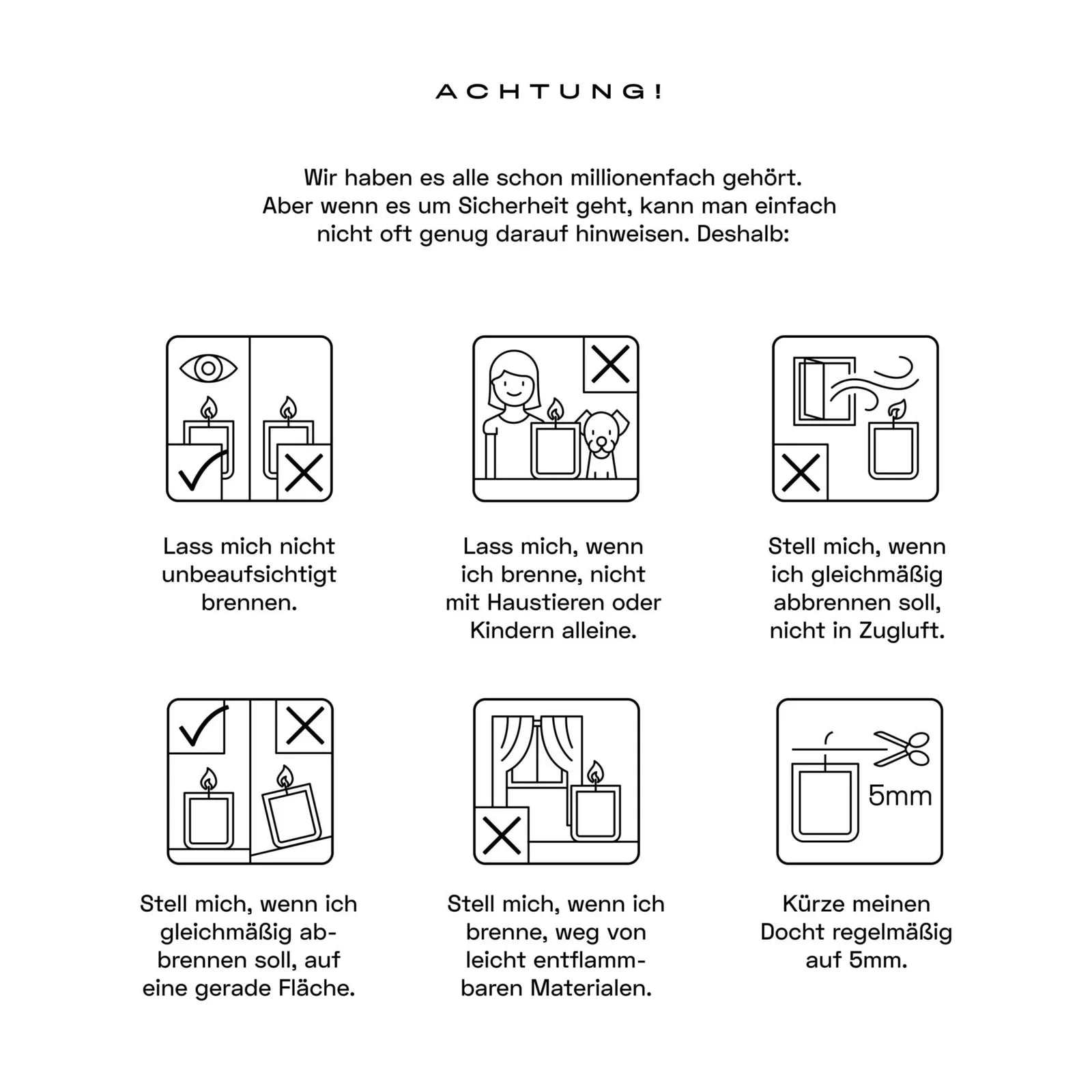 Für gleichmäßiges Abbrennen die Kerze jeweils 1–3 Stunden brennen lassen.