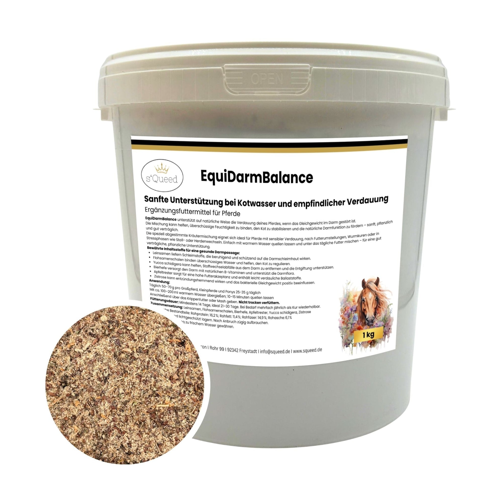 EquiDarmBalance – natürliches Zusatzfutter für Pferde bei Kotwasser & Durchfall