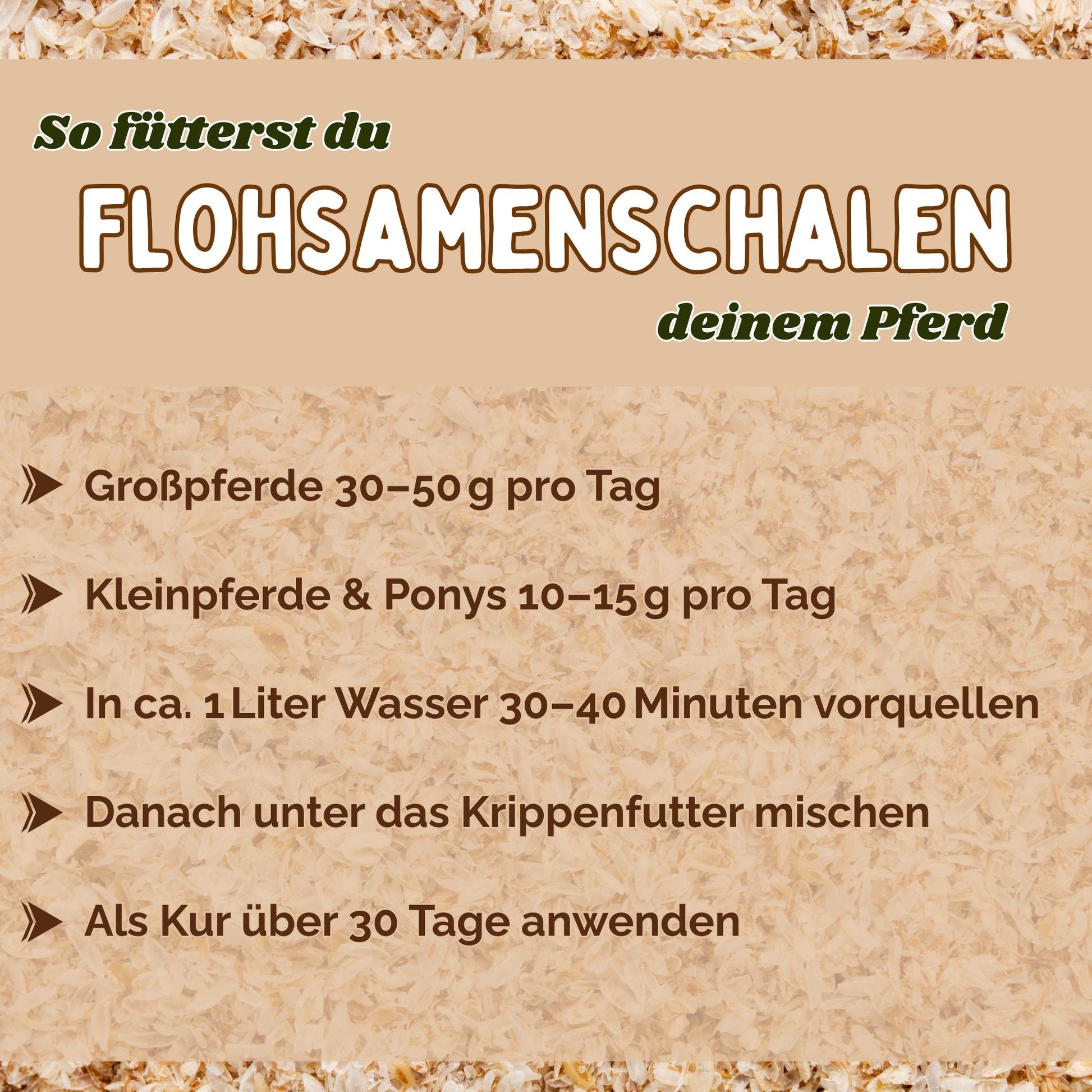Ob bei Kotwasser, nach der Weidesaison oder zur begleitenden Unterstützung bei Verdauungsproblemen – Flohsamenschalen für Pferde lassen sich einfach anwenden und sind in der Praxis gut bewährt.