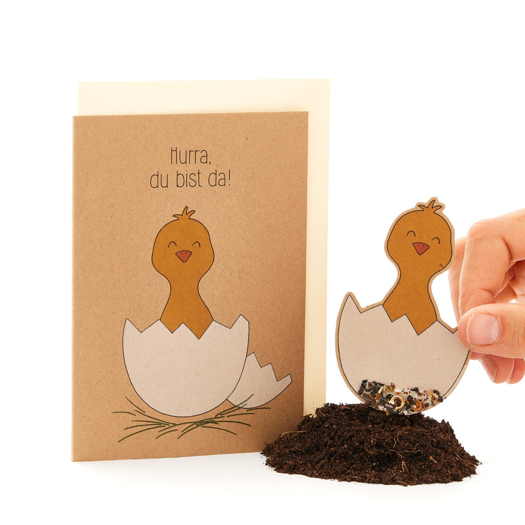 • Das Design vom Saatstecker ist auch auf die Karte gedruckt. Das Gesamtmotiv bleibt also erhalten.
