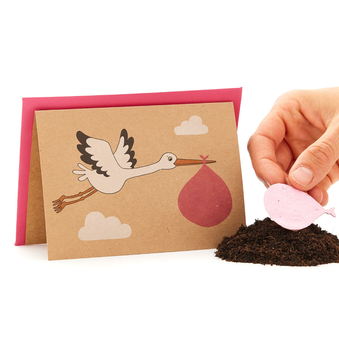 Unser Storch trägt zwar keine Babys, aber doch einen Sack voll Blumen.