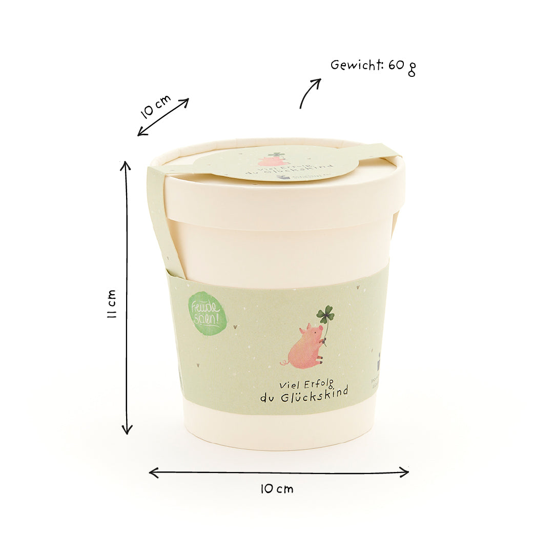 Verschenke einen Hauch von Glück: Dieses liebevoll gestaltete Anzuchtset für Glücksklee sagt mehr als tausend Worte: Es schenkt Mut, Glück und ein Lächeln – mit einem Becher, der zeigt, wie viel man jemandem wünscht. Der Spruch „Viel Erfolg, du Glückskind“ macht daraus ein kleines, aber bedeutungsvolles Geschenk.