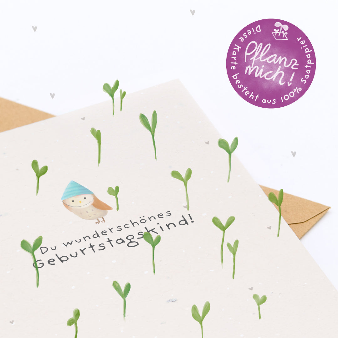 Nachhaltig & plastikfrei: Die Karte zum Geburtstag ist aus kompostierbarem Saatpapier gefertigt, der Umschlag aus Kraftpapier, die Hülle biologisch abbaubar - ein Geschenk mit Herz und Wirkung.