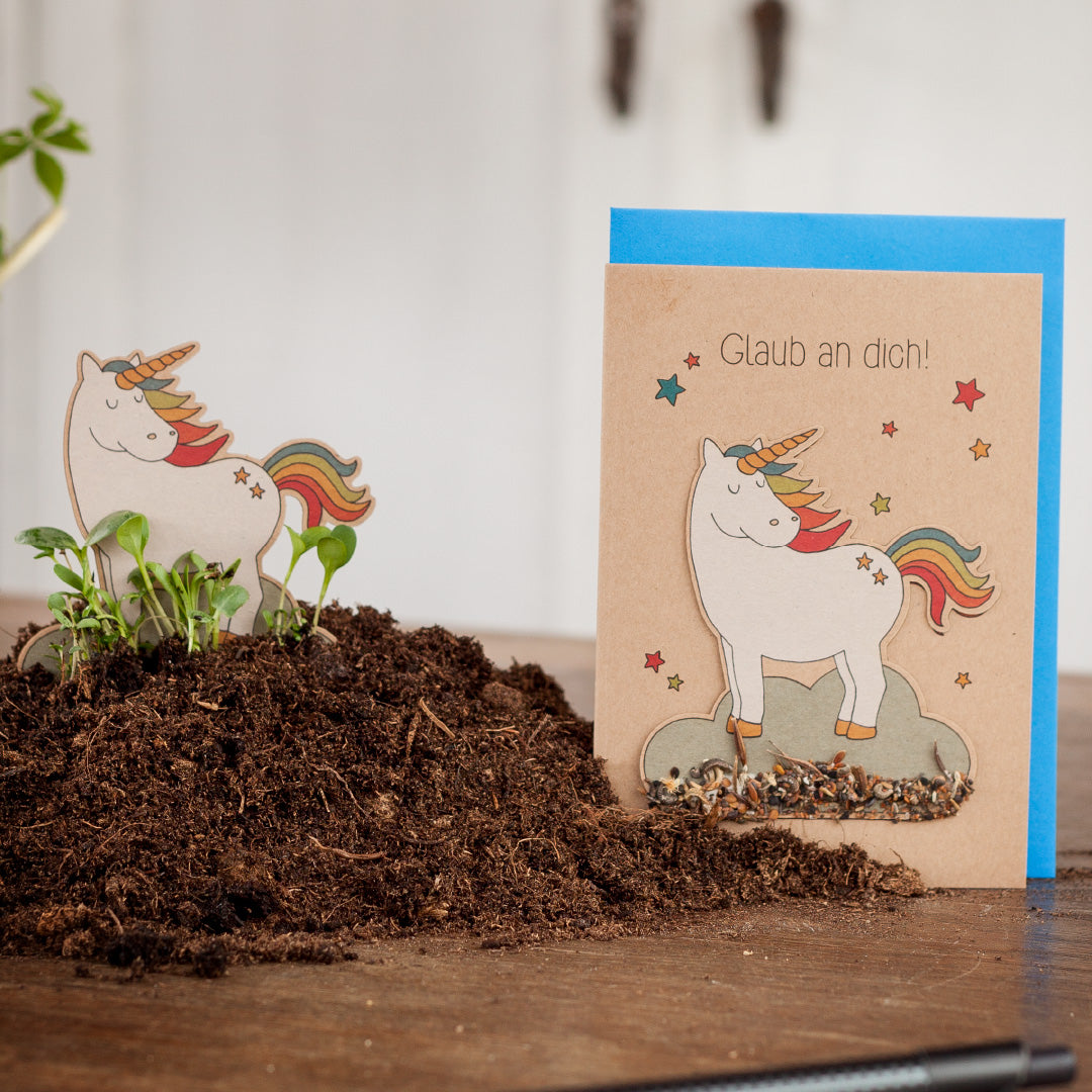 • Das Design vom Saatstecker ist auch auf die Karte gedruckt. Das Gesamtmotiv bleibt also erhalten.