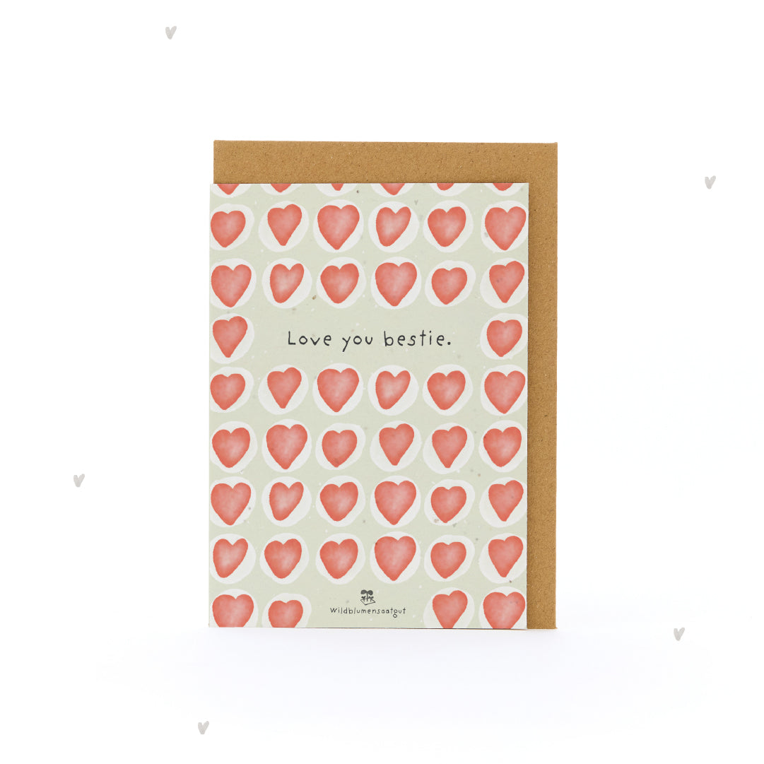 Love you, Bestie: Diese Karte sagt, was viel zu selten gesagt wird: Du bist wichtig für mich. Für den Menschen, der immer da ist, der zuhört, mitlacht, mitühlt. Sie sagt: Du bist ein Geschenk in meinem Leben. Ich bin froh, dass es dich gibt. Perfekt zum Geburtstag, Freundschaftstag oder einfach zwischendurch.
