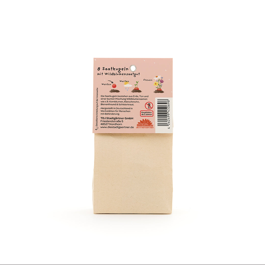 Liebe blüht in jedem Moment: Die Saatkugeln enthalten eine bunte Wildblumenmischung, die ganz einfach ausgesät werden kann – auf dem Balkon, im Garten oder im Topf. Mit ein wenig Wasser und Sonne wächst daraus ein farbenfrohes Blütenmeer voller Gefühl.