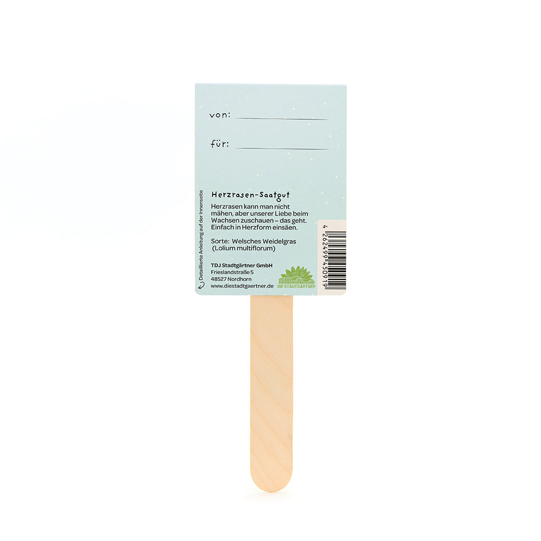 Verschenke ein Stück Liebe: Dieser charmante Saatgruß bringt Herzklopfen zum Wachsen – ganz wörtlich! Aus ihm wächst ein grünes Weidelgras-Herz heran. Auf der Rückseite ist Platz für deinen Namen und den der beschenkten Person – so wird dein Gruß zu einer persönlichen Überraschung.