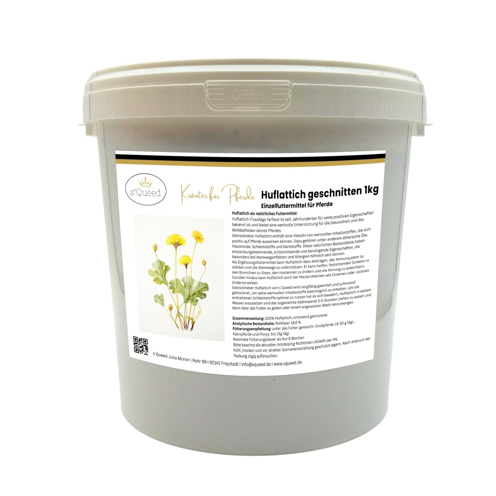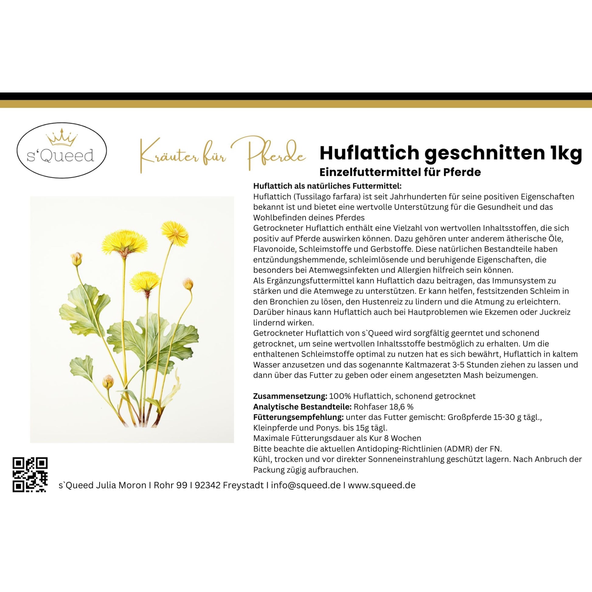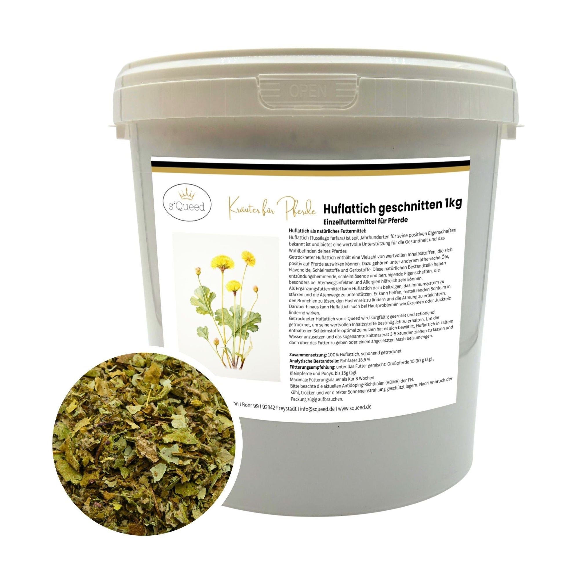 Huflattich, auch bekannt als Tussilago farfara, ist ein vielseitiges Kraut mit entzündungshemmenden und schleimlösenden Eigenschaften. Perfekt geeignet, um die tägliche Futterration aufzuwerten, unterstützt Huflattich für Pferde die Atemwege, das Immunsystem und sogar die Hautgesundheit.
