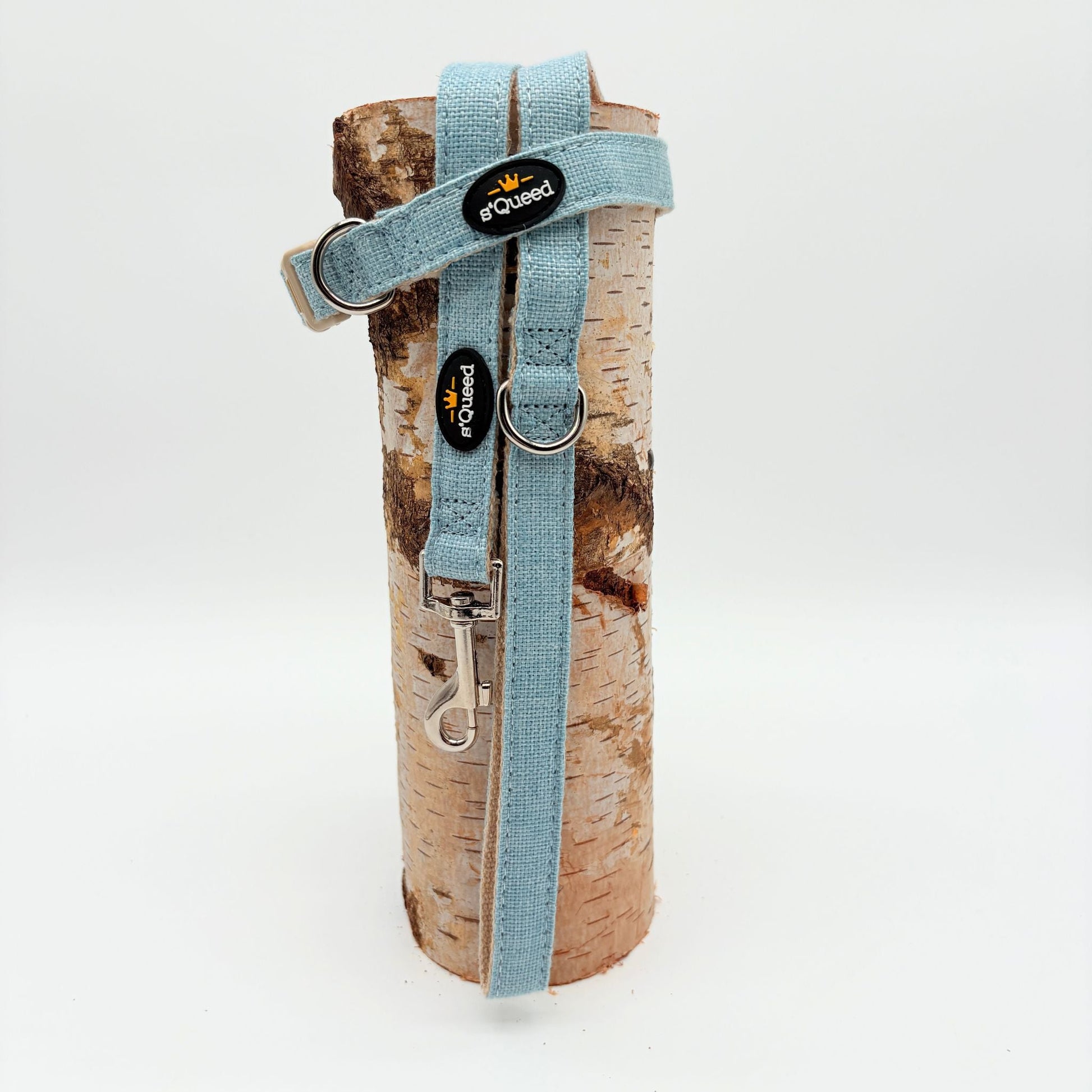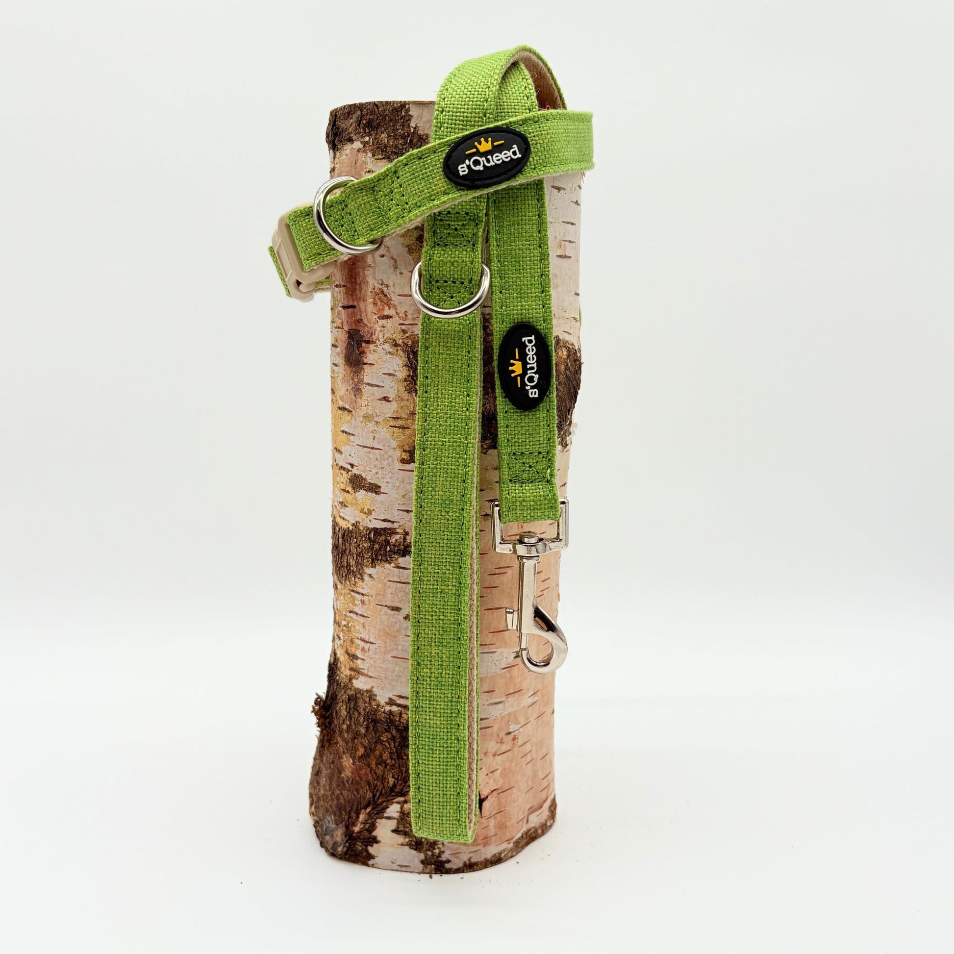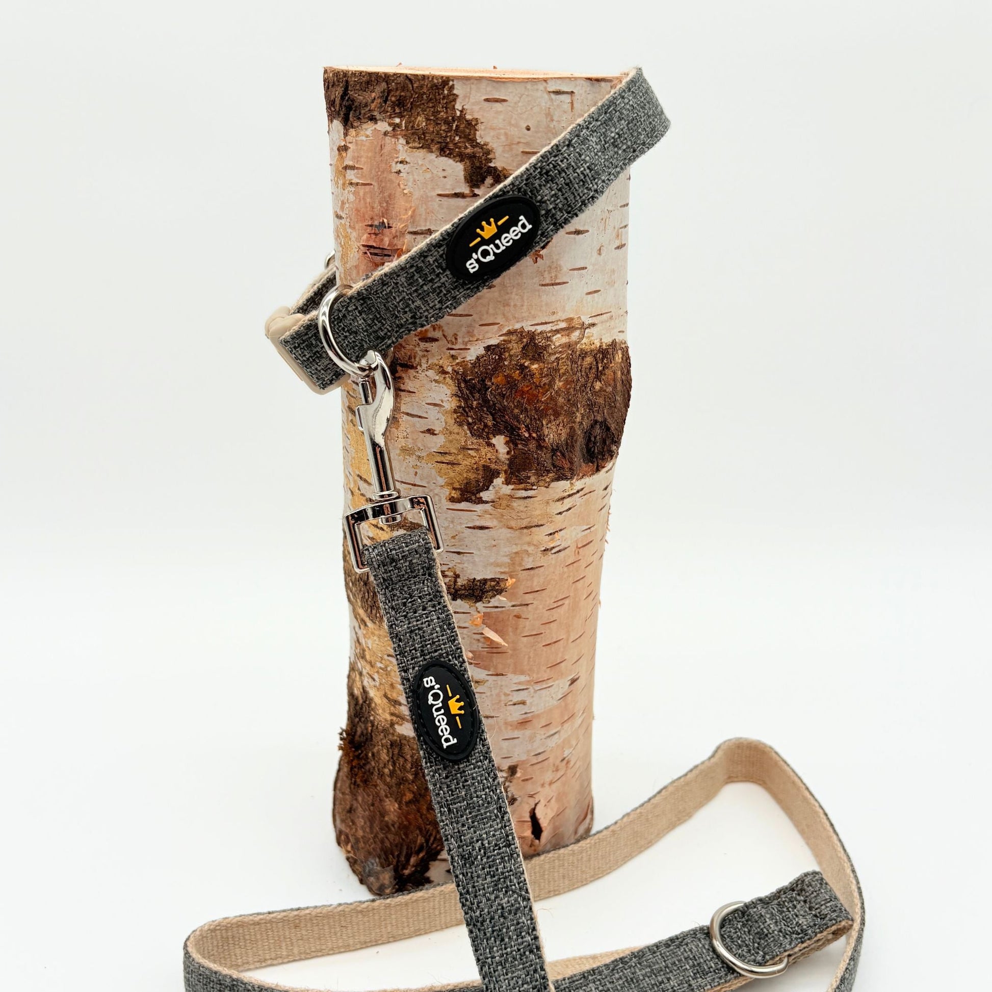 Natürlich & nachhaltig: Halsband und Leine bestehen aus strapazierfähigem Hanf-Baumwollgewebe – hypoallergen, hautfreundlich & langlebig.