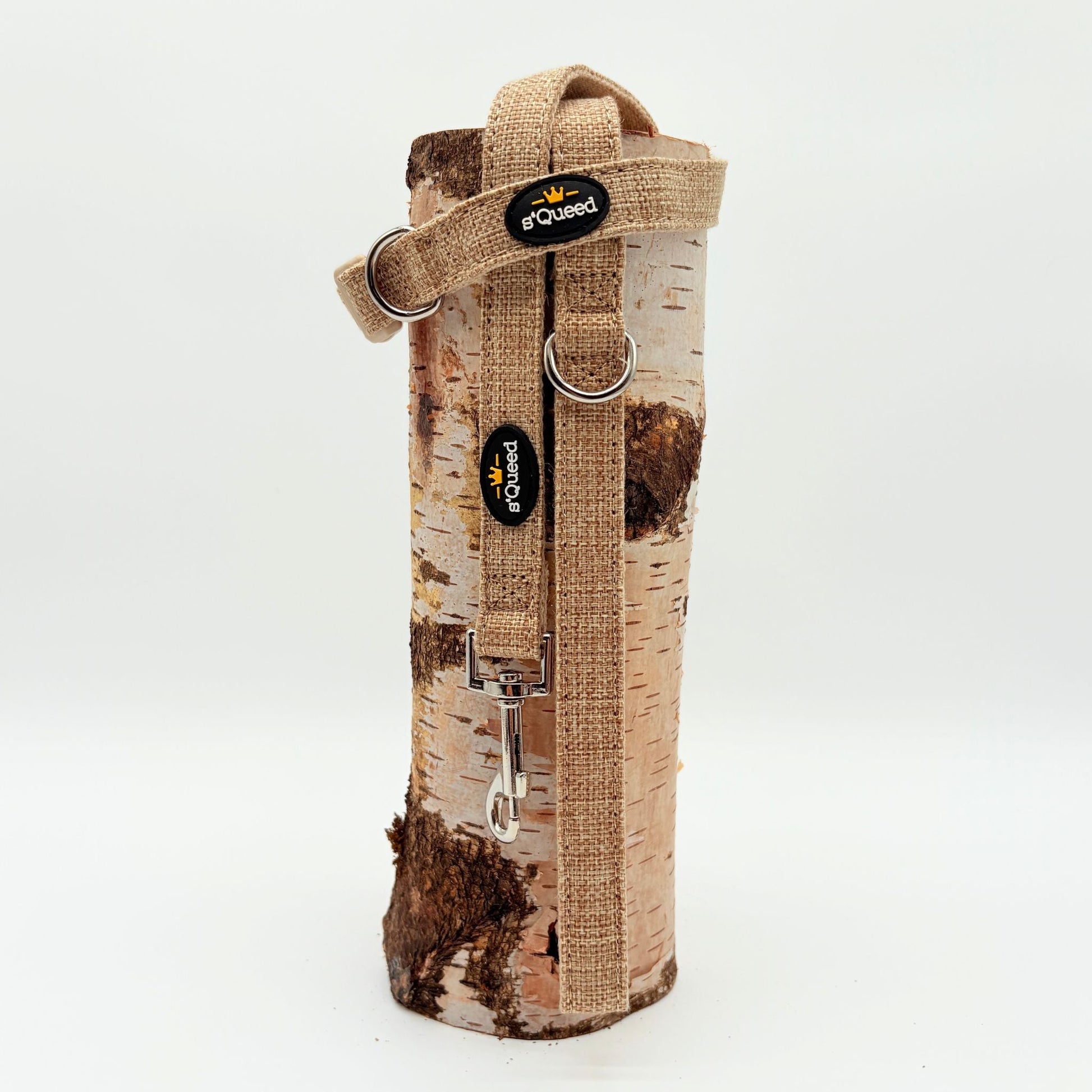 Mit dem „Hempy“-Set erhältst du alles, was dein Hund für Spaziergänge braucht: Ein verstellbares Hundehalsband aus nachhaltigem Hanf, die passende Leine sowie eine individuell gravierte Hundemarke mit Name und Telefonnummer. So bist du nicht nur stylisch, sondern auch sicher unterwegs.