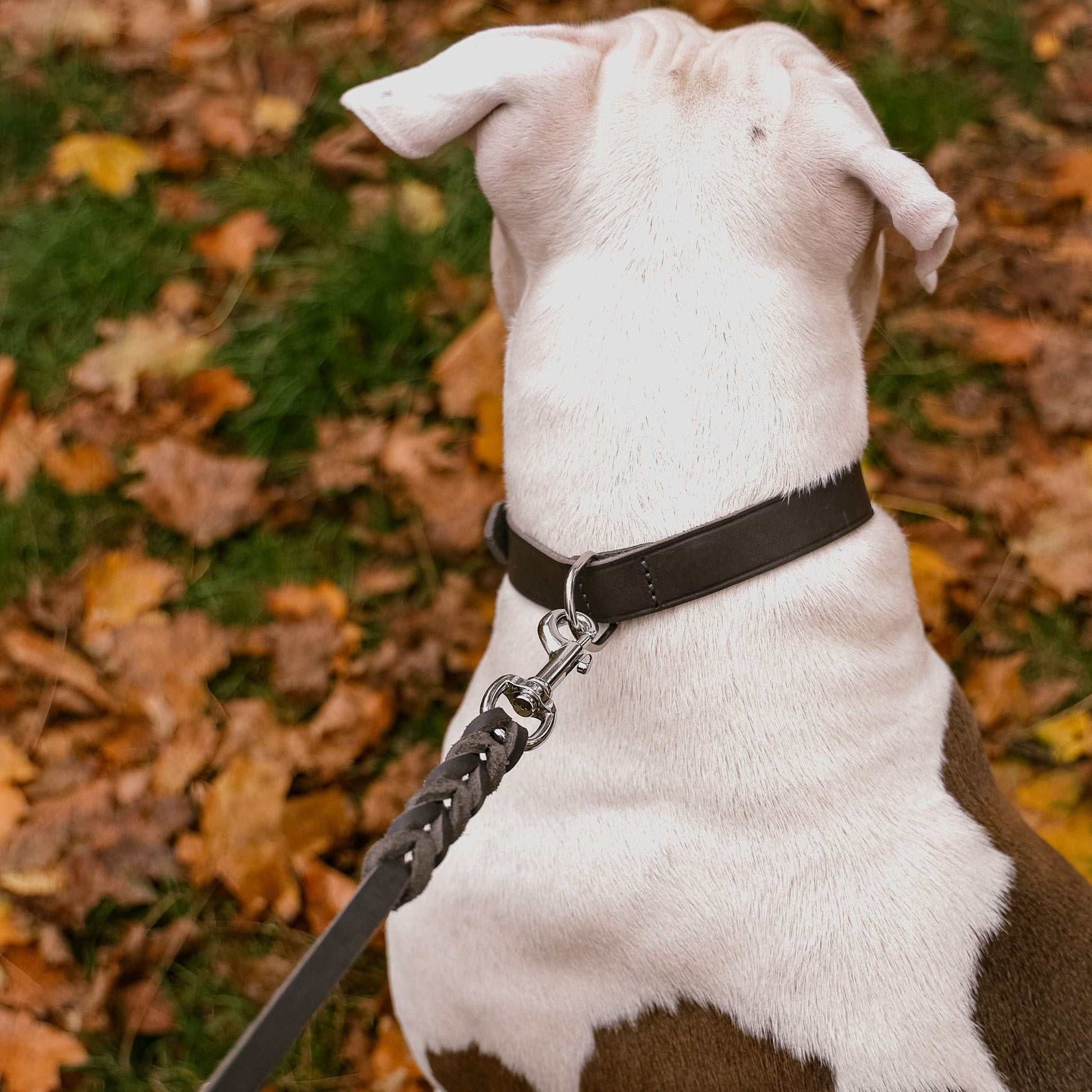 Dank des gewachsten Leders ist die Hundeleine aus geflochtenem Leder angenehm im Griff und resistent gegen Schmutz und Feuchtigkeit.