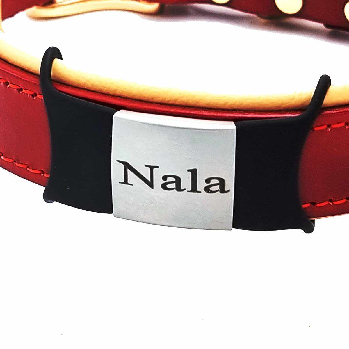 Klapperfreie Hundemarke Silikonslider mit Edelstahl-Schild für Halsbänder inkl. GRATIS Gravur