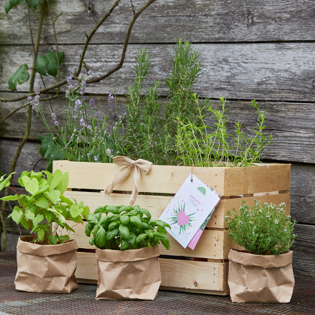 Die Pflanzen werden in der Holzkiste mit entsprechenden 'Setcards' geliefert. Mehr Informationen zu diesem Set und den enthaltenen Pflanzen findest du weiter unten auf dieser Seite. Sollte eine Pflanze kurzfristig nicht verfügbar sein, wird sie durch eine ähnliche Pflanze ersetzt.
