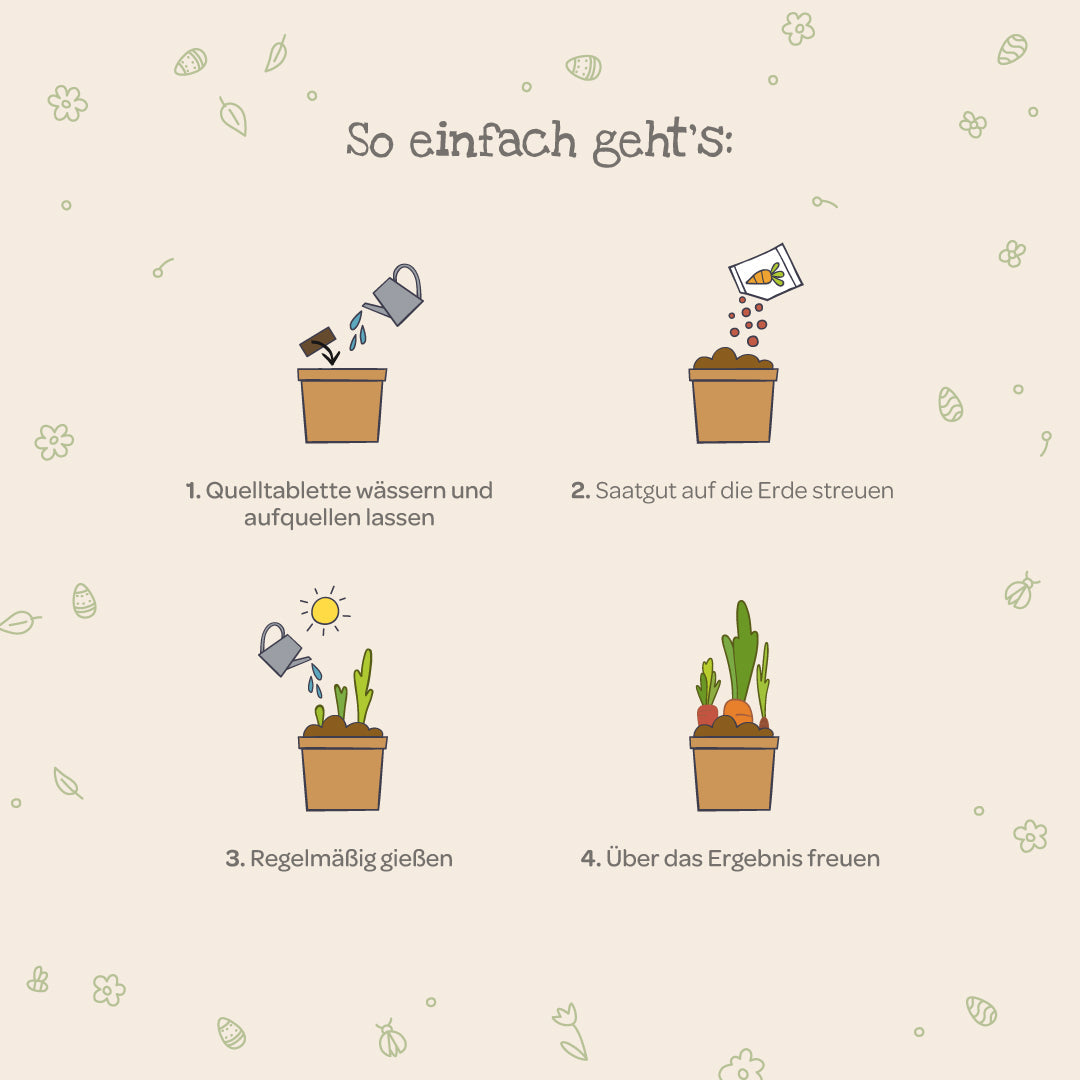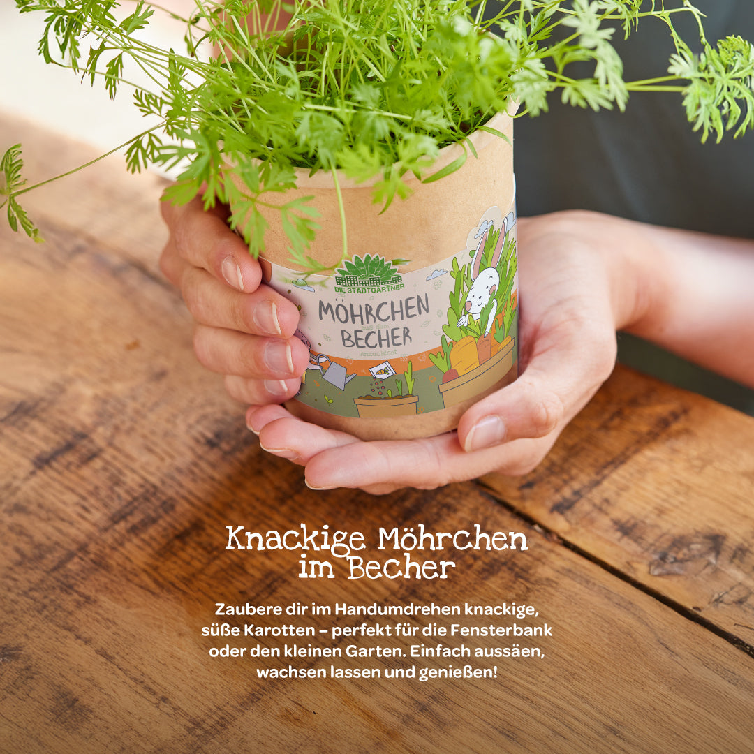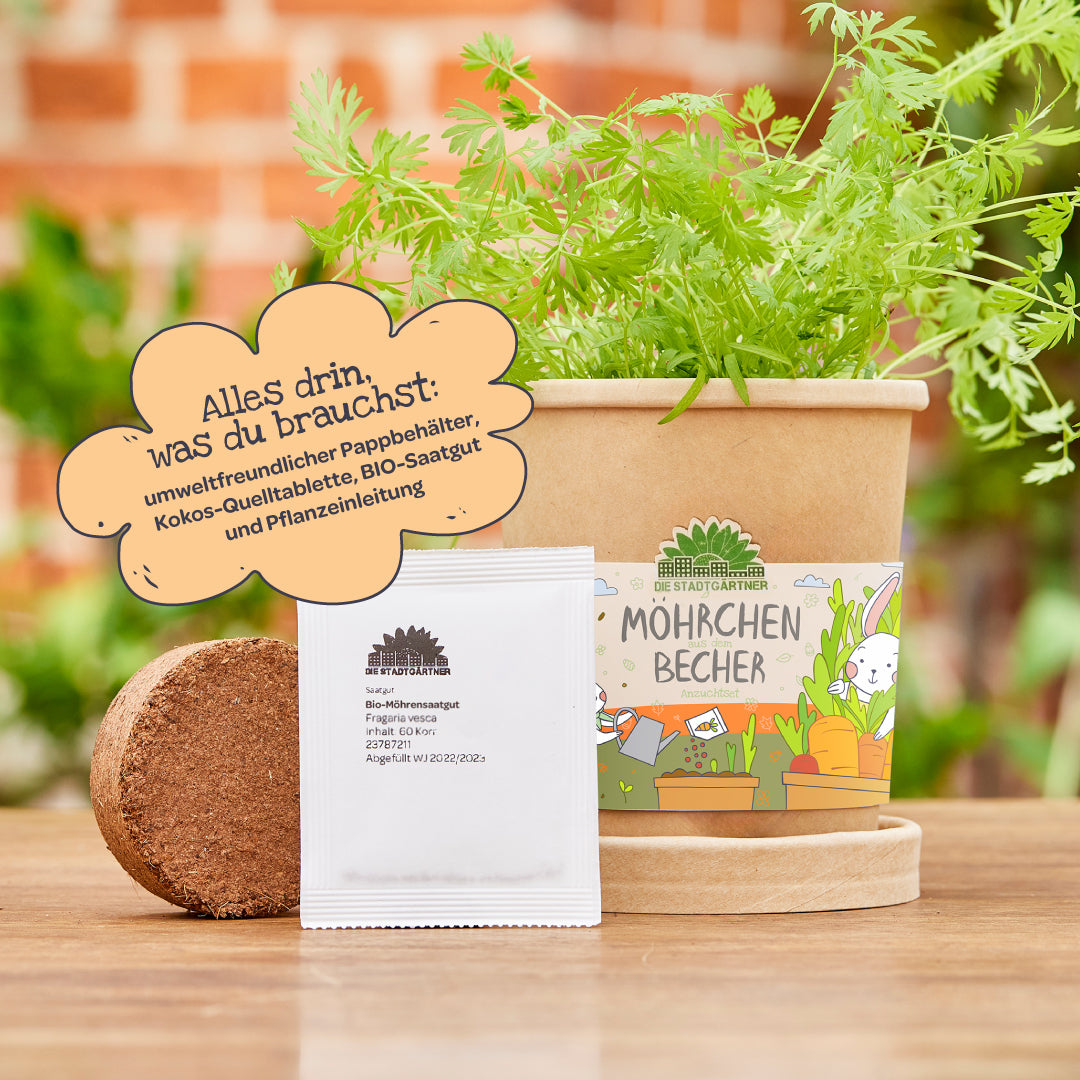 🥕 Perfekt für kleine Gärtnerinnen & Gärtner: Mit diesem niedlichen Anzuchtset können Kinder im wahrsten Sinne des Wortes kinderleicht ihre eigenen Möhrchen vorziehen und später ernten.