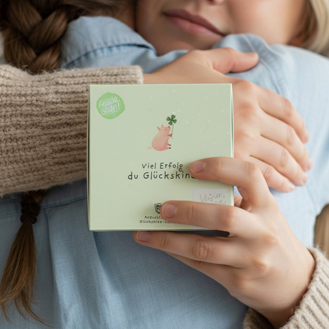 Ein Glücksbringer, der Wurzeln schlägt: Ob zur Prüfung, zum Schulabschluss, Studienstart oder ersten Arbeitstag - dieses Set sagt auf besondere Weise "Alles Gute und viel Erfolg". Aus dem Saatgut wächst Glücksklee, und mit etwas Glück zeigt sich sogar ein vierblättriges Kleeblatt - das klassische Symbol für Glück, das bleibt.