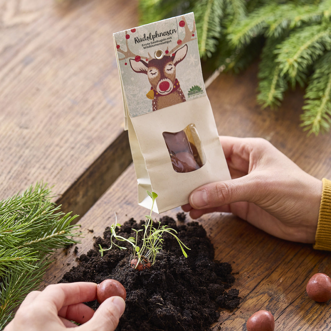 Bunte Blumenpracht: Die Rudolphnasen enthalten 19 verschiedene Sorten von Wildblumensaatgut und sorgen für eine bunte Blumenwiese im Garten.