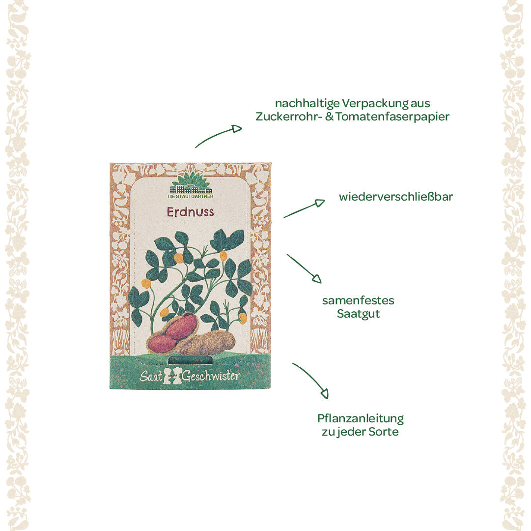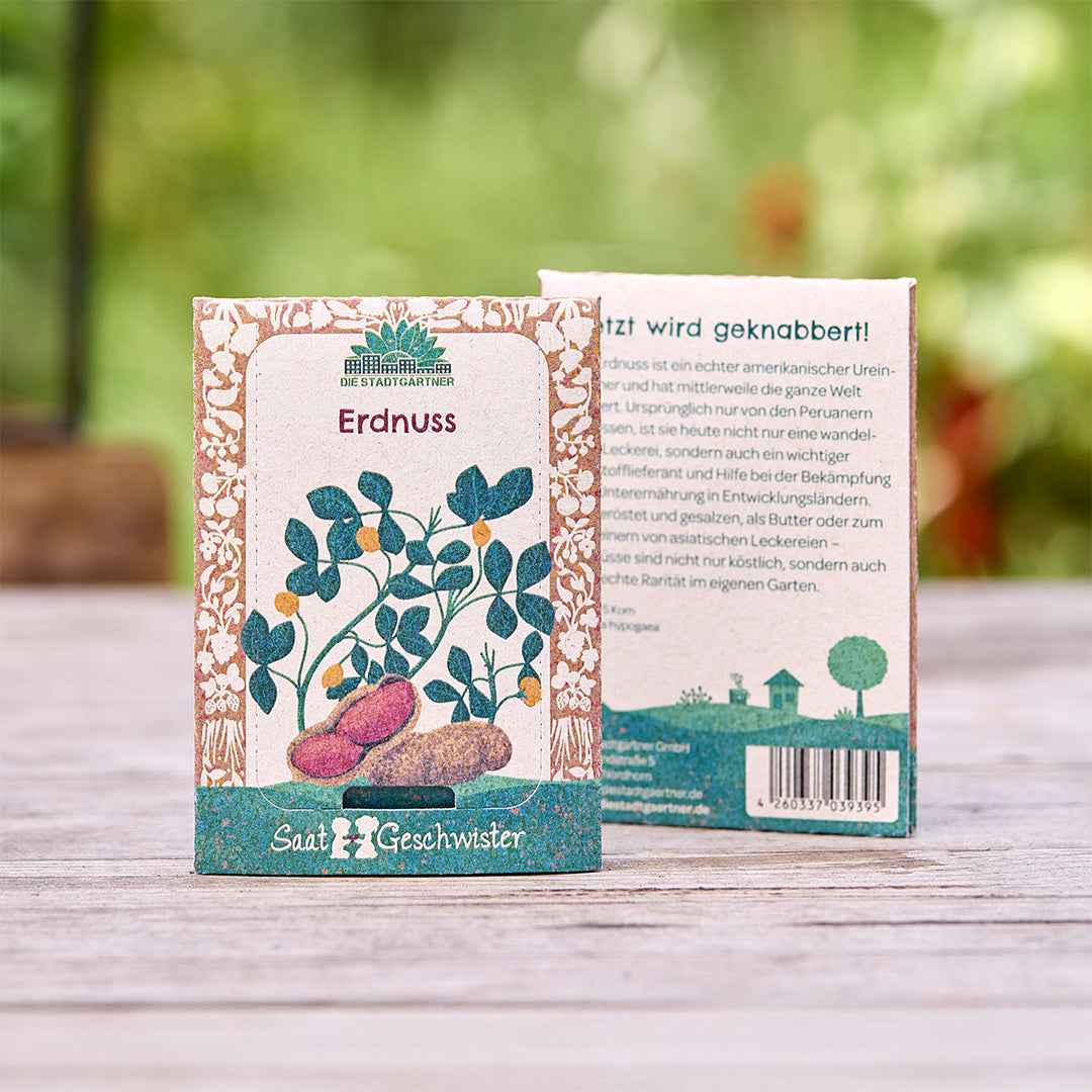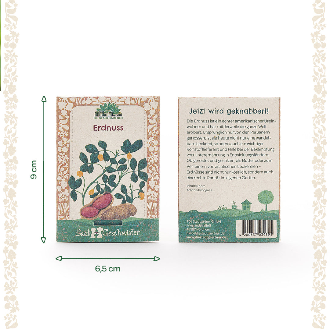Nachhaltige Verpackung: Das Erdnuss-Saatgut wird in umweltfreundlichem Zuckerrohrpapier verpackt – eine nachhaltige Alternative. Das liebevolle Design macht die Erdnuss-Samen zum perfekten Geschenk für einen lieben Menschen.