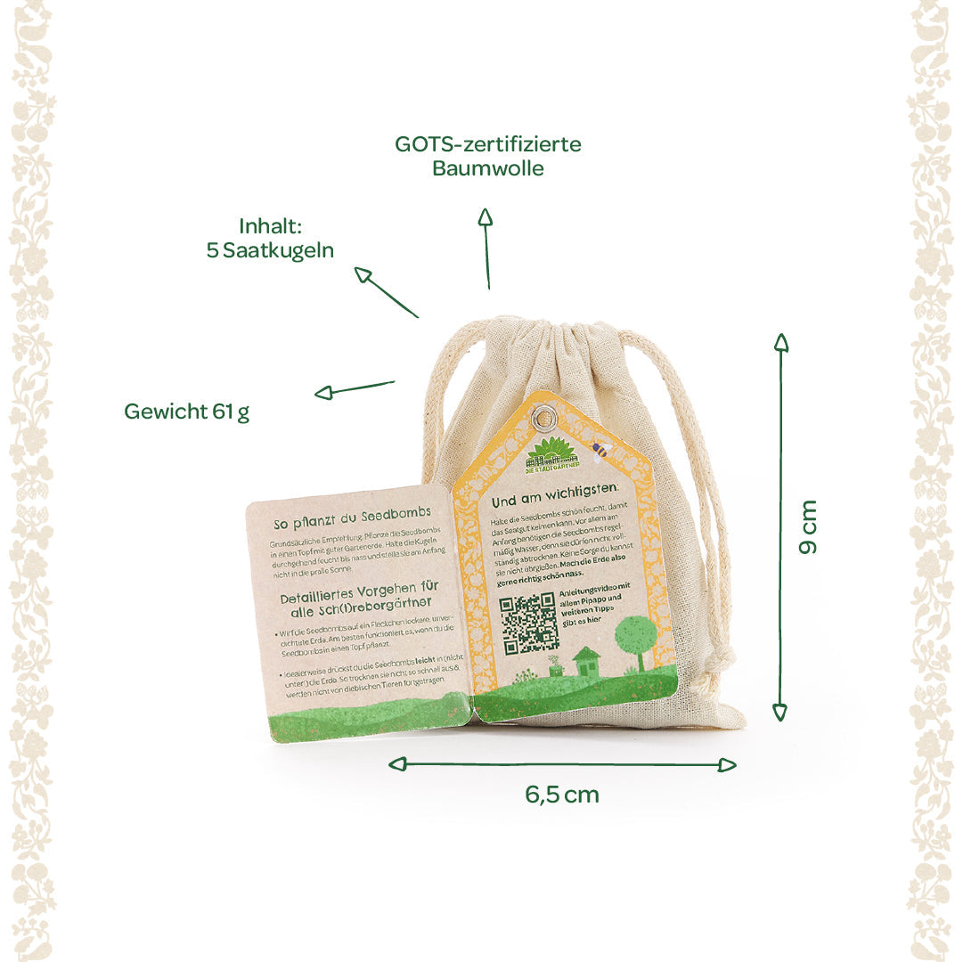 Nachhaltig & unkompliziert: Es sind keine Gartenkenntnisse nötig – nur lockere Erde, Sonne, Wasser und etwas Geduld. Das Baumwollsäckchen ist GOTS-zertifiziert und wiederverwendbar.