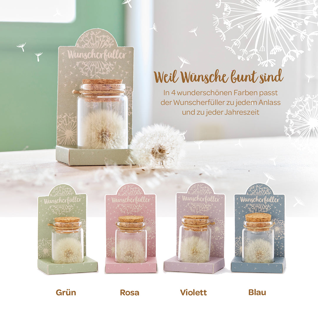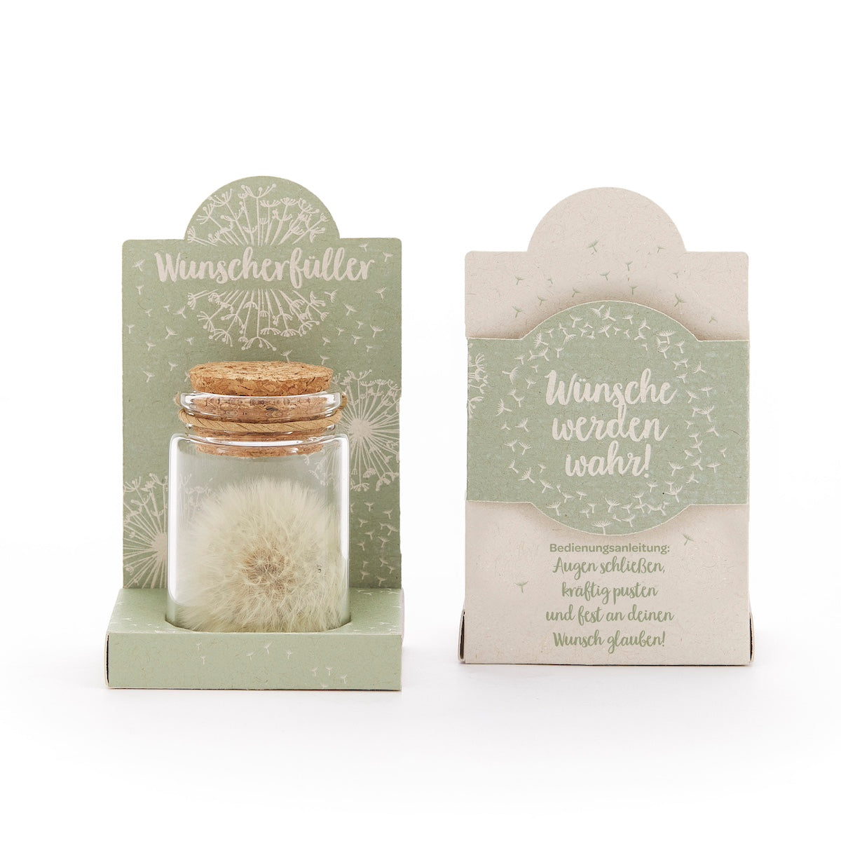 💚 Natürlich & handgemacht: Die Pusteblumen wurden für dich liebevoll von Hand gepflückt. Der Wunscherfüller wird in Deutschland handgefertigt. Er ist ewig haltbar, so dass die Wünsche für immer bleiben.